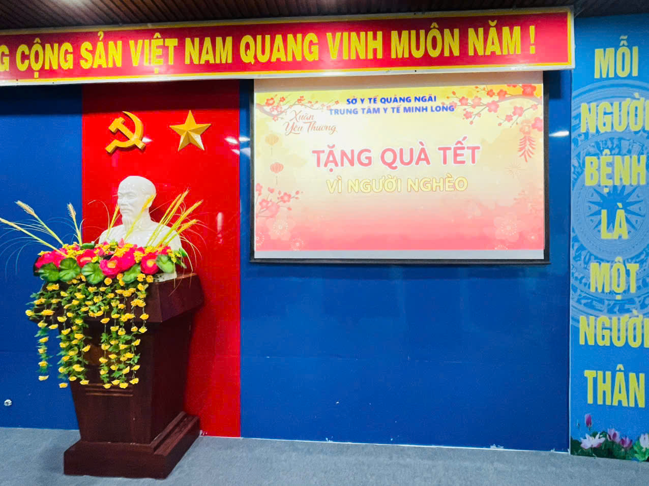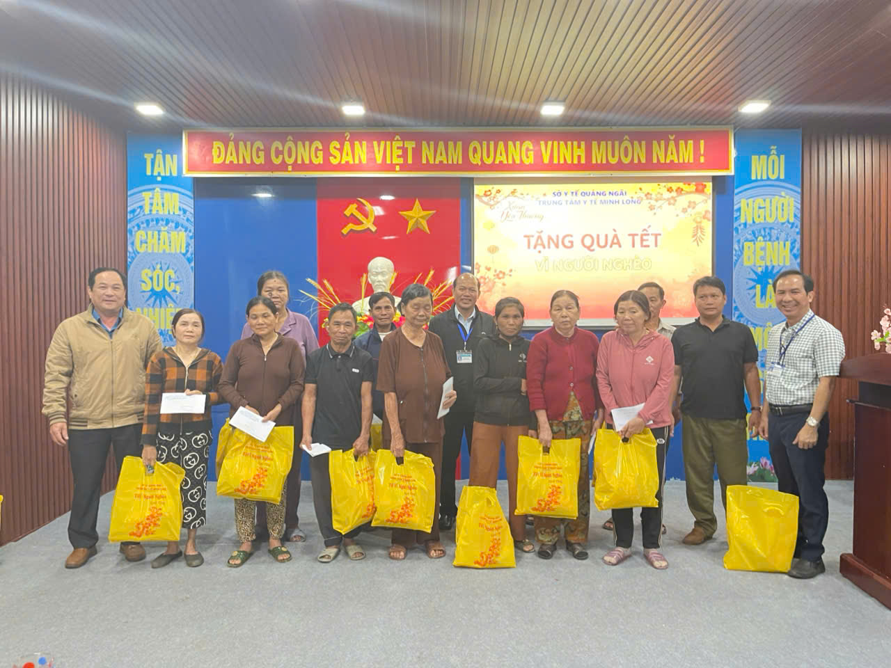Hưởng ứng phát động Tết vì Người nghèo. Sáng ngày 10/02/2026, Trung tâm Y tế Minh Long tổ chức chương trình tặng quà Tết cho người nghèo, hộ gia đình có hoàn cảnh khó khan, và Thương binh trên địa bàn xã Minh Long, nhằm góp phần giúp bà con đón Tết Xuân Bính Ngọ 2026 vui tươi, đầm ấm.