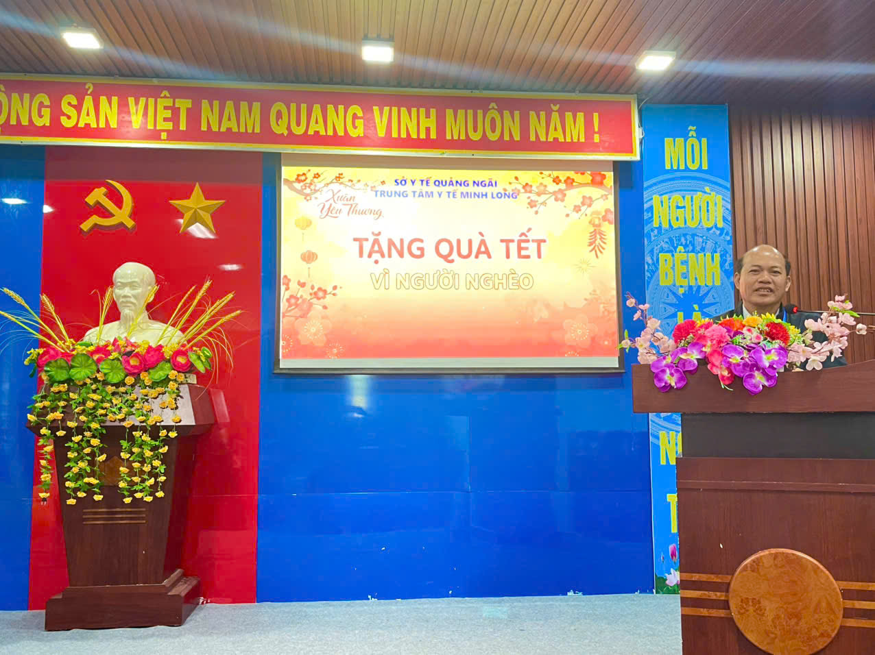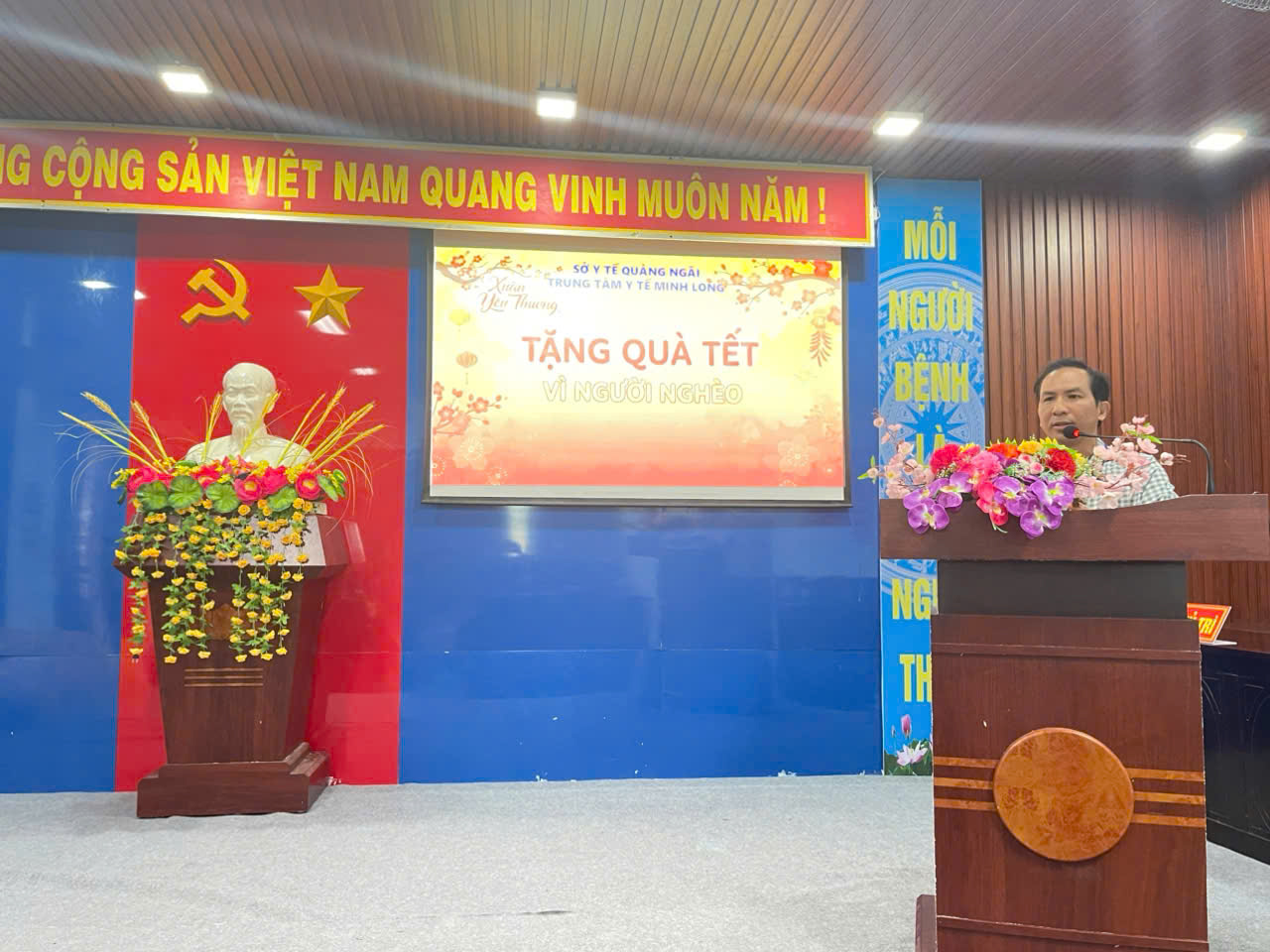 Đến dự, phát biểu và chúc Tết bà con có: BS Đinh Muôn - Giám đốc Trung tâm Y tế Minh Long; BS Trần Đặng Giao - Phó Giám đốc Trung tâm Y tế Minh Long, Cử nhân Phạm Hồng Luận -Trưởng phòng Tổ chức- Hành chính-Tài chính-Kế toán.